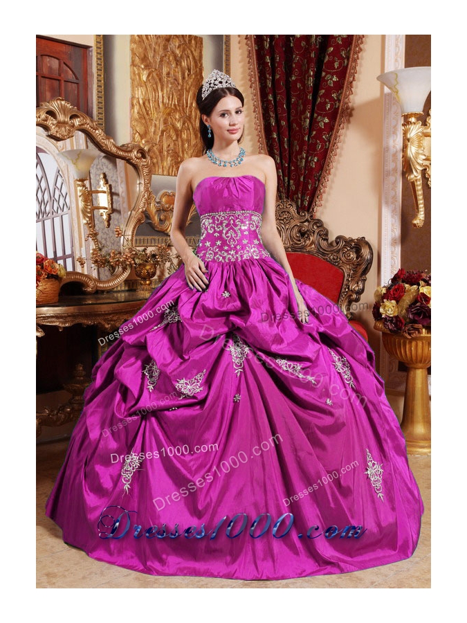 Strapless Taffeta Appliques Decorate Quinceanera Dress for Girls