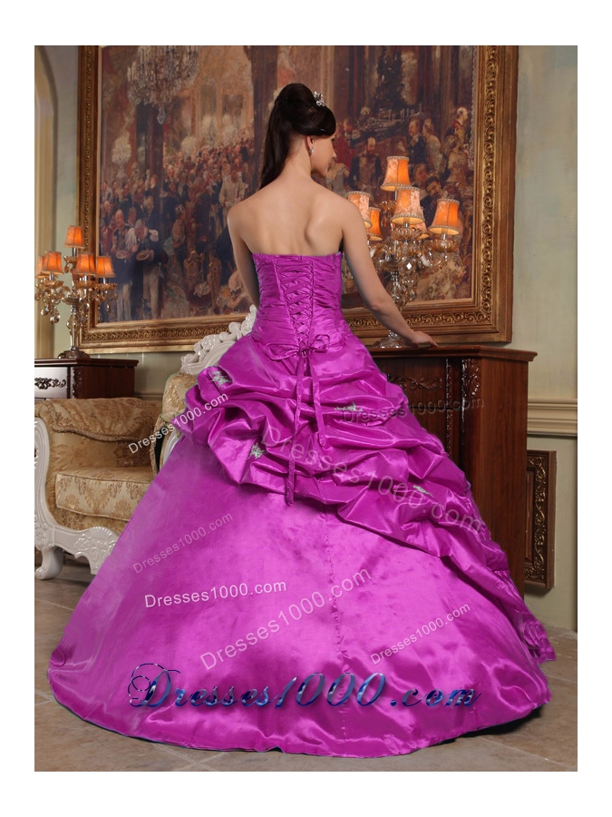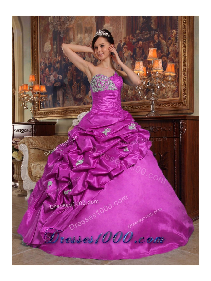 Sweetheart Appliques and Pick-ups Taffeta Quinceanera Dress in Fuchsia