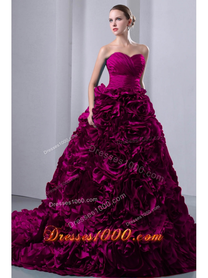 Fuchsia A-Line / Princess Sweetheart Court Train Ruffles Quinceanea Dress