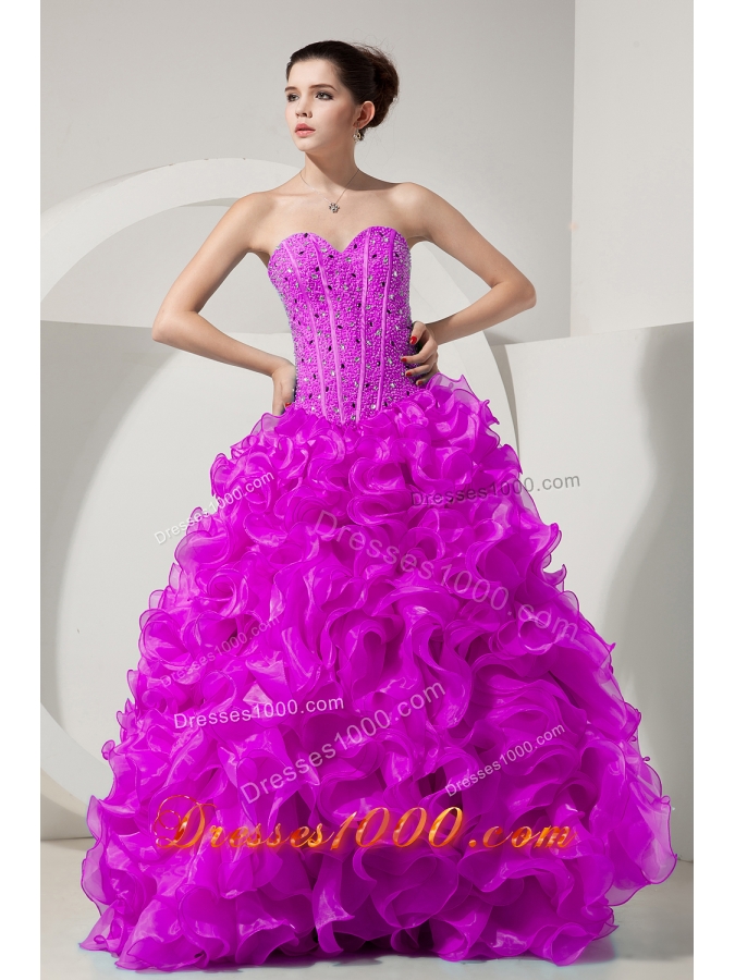 A-line / Princess Sweetheart Organza Sweet Sixteen Dresses with Beading and Ruffles