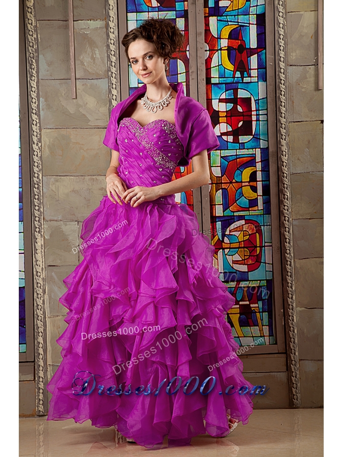 Fuchsia A-line Sweetheart Beaded Decorate Bodice Quinceanea Dress