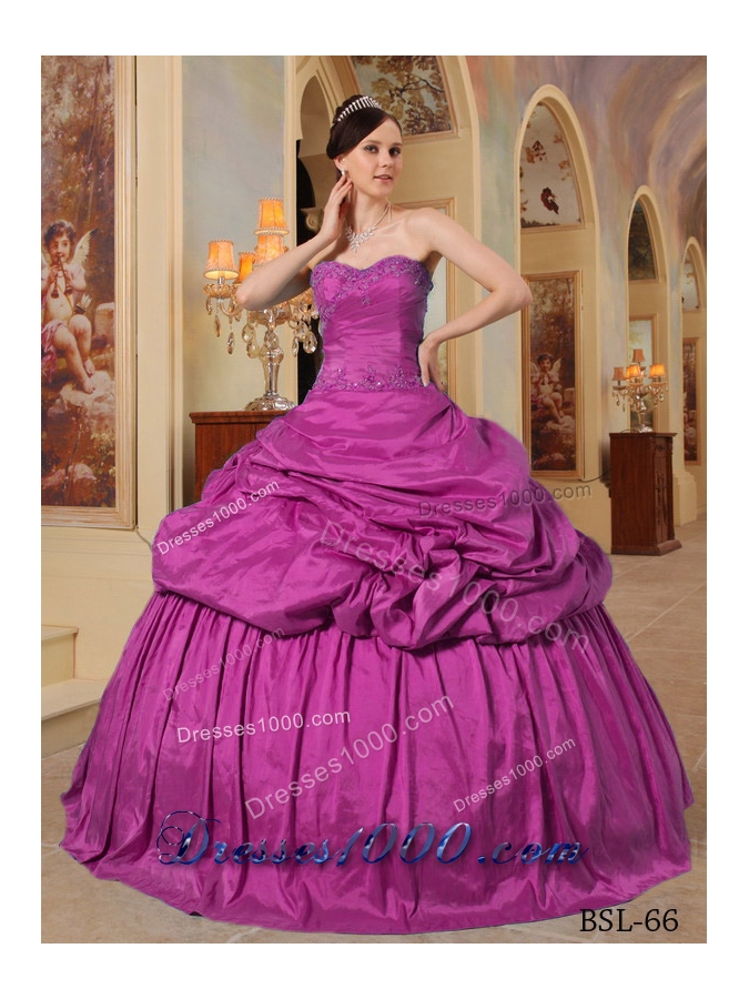 Fuchsia Ball Gown Sweetheart Floor-length Taffeta Beading Quinceanera Dress