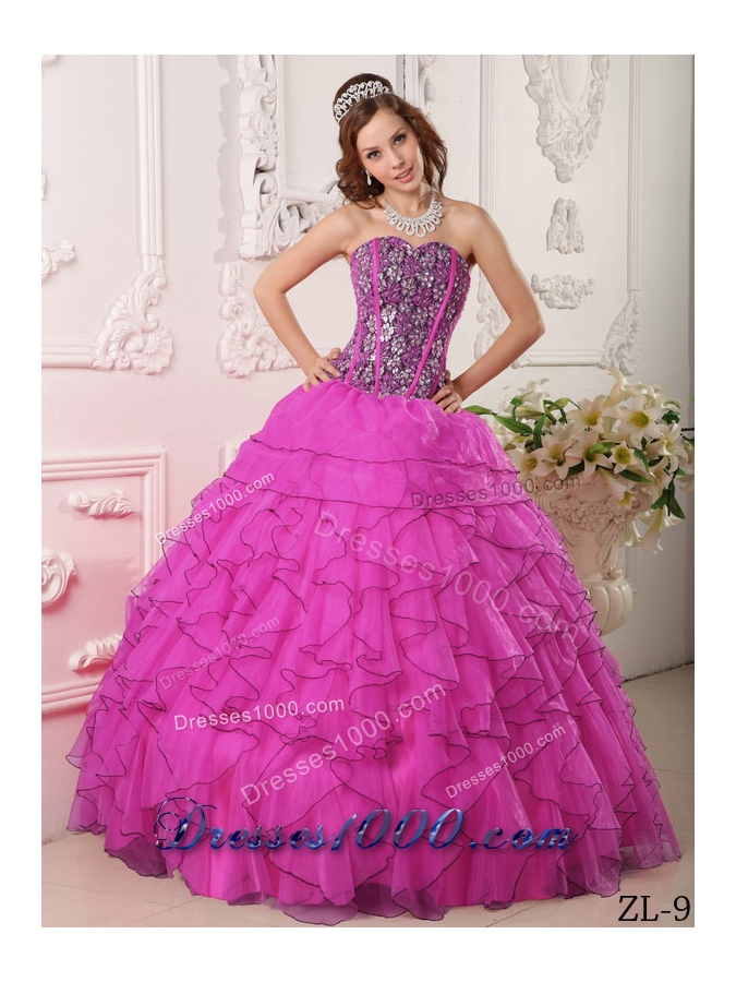 Fuchsia Ball Gown Sweetheart Floor-length Organza Beading Quinceanera Dress