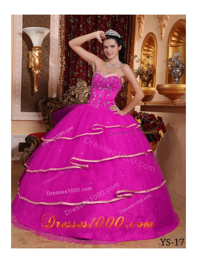 Sweetheart Satin and Tulle Beaded Decorate Bodice Quinceanera Gown