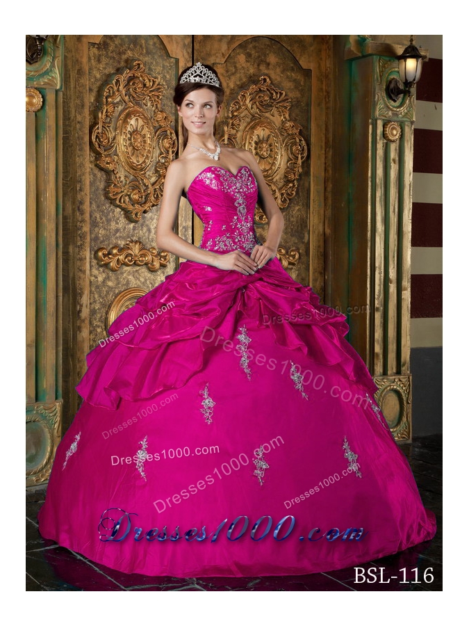 Sweetheart Taffeta Appliques Decorate Quinceanera Dress in Fuchsia