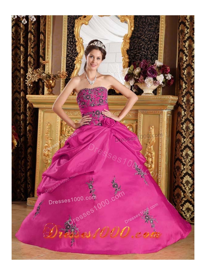 Discount Strapless Taffeta Fuchsia Quinceanera Dress with Appliques