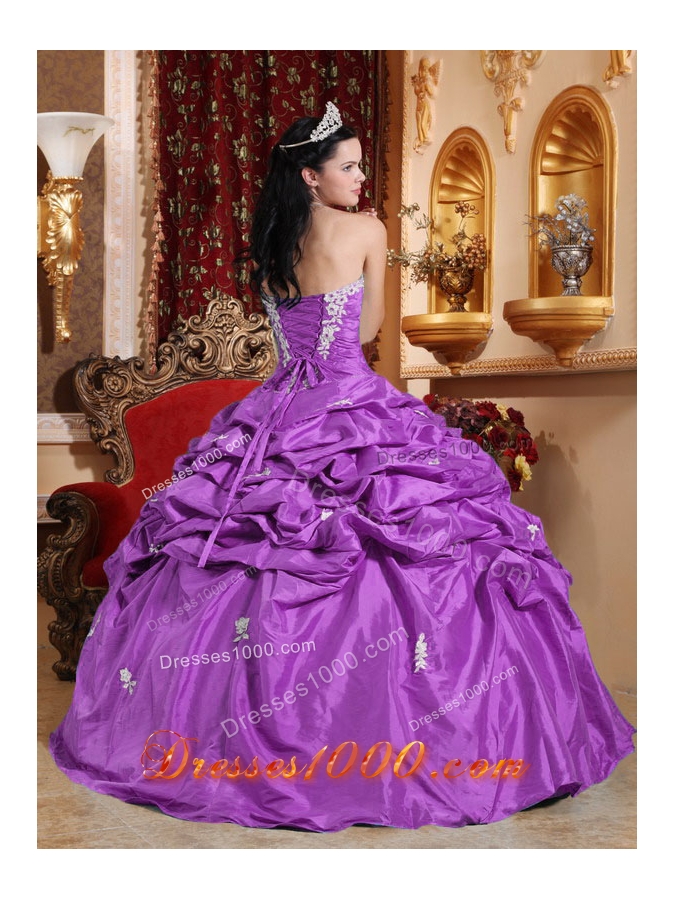 Strapless Taffeta Quinceanera Gowns with Pick-ups and Appliques