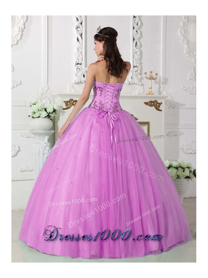 Lilac Ball Gown Sweetheart Quinceanera Gowns with Appliques and Beading