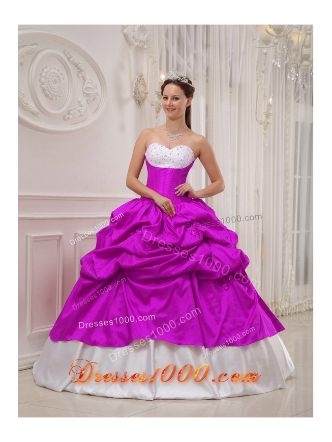 Sweetheart Beading and Pick-ups Quinceanera Dress in Fuchsia and White