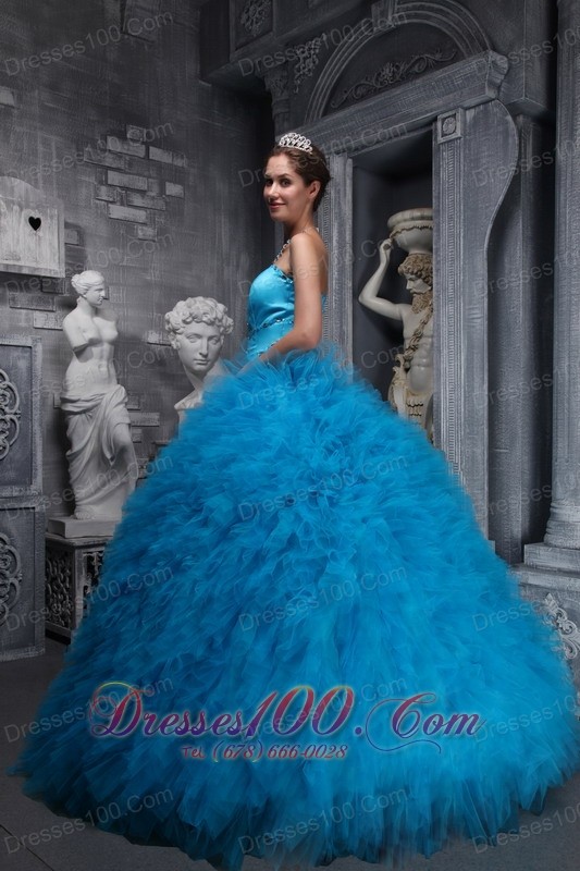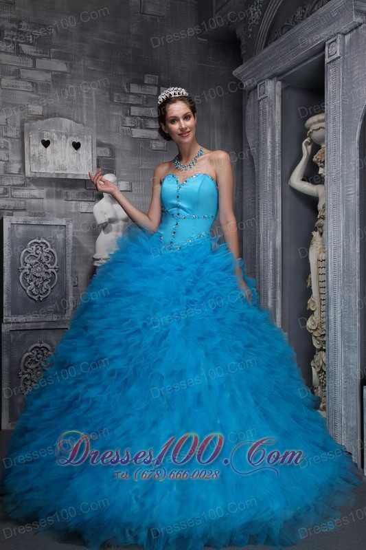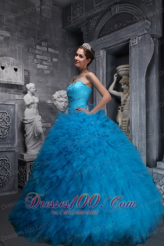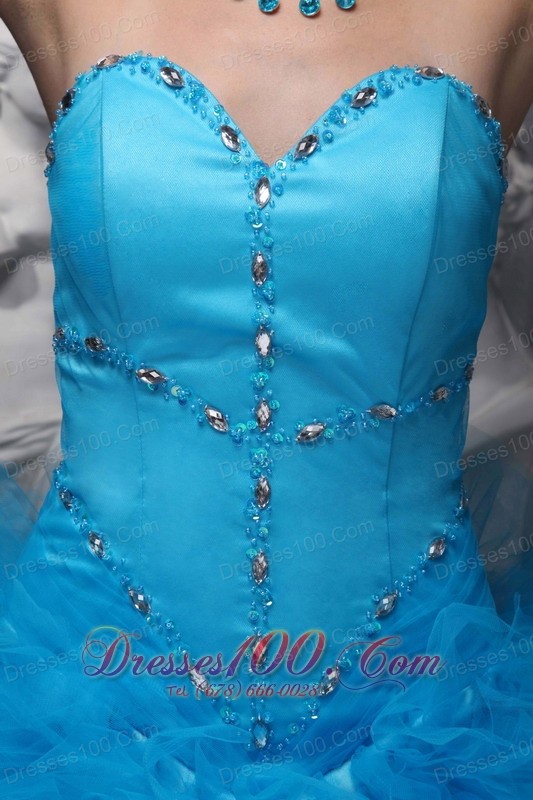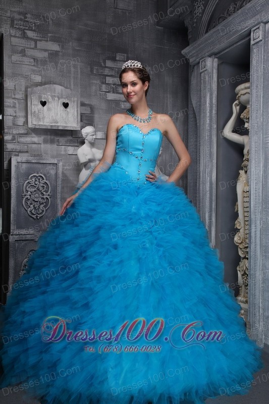 Baby Blue Sweetheart Ruffles Beading Ball Gown Quinceanera Dress