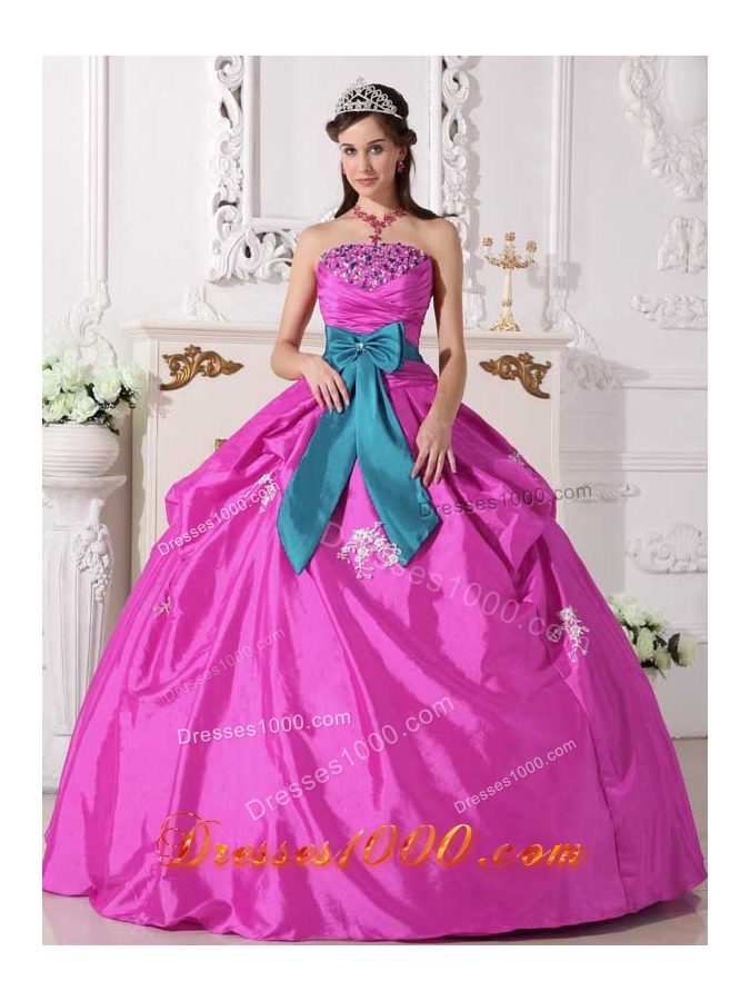 Strapless Taffeta Beading and Appliques Quinceanera Dress for Clearance