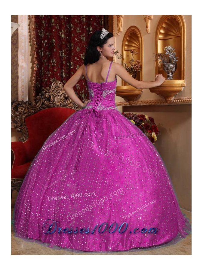 Spaghetti Straps Sequined and Appliques Quinceanera Dress for 2014
