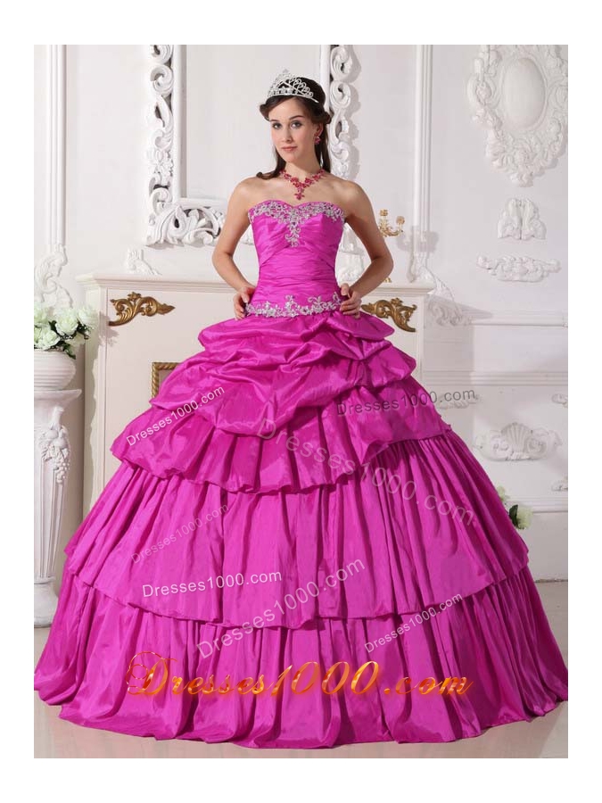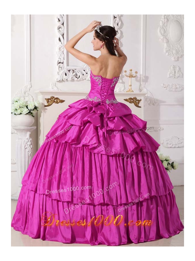Sweetheart Taffeta Appliques and Pick-ups Detachable Quinceanera Gown