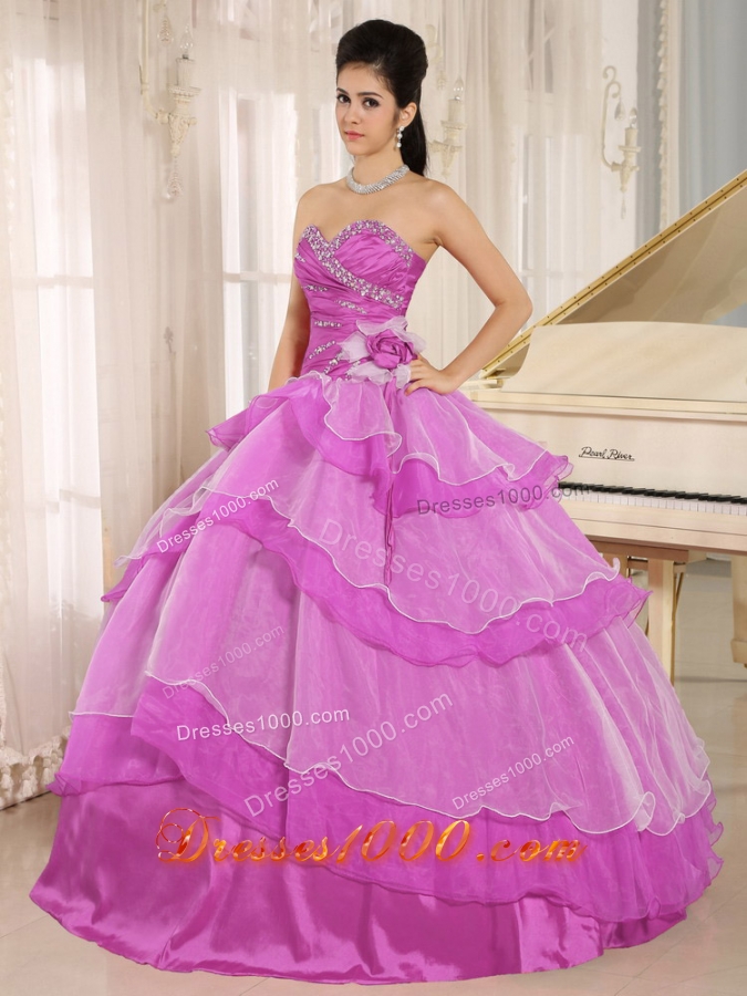 Sweetheart Beading and Hand Made Flower Quinceanera Dress in Fuchsia