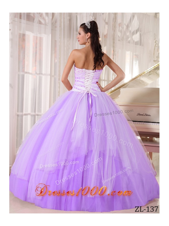 This gorgeous quinceanera dress features a strapless sweetheart neckline ballgown, the slightly ruched bodice was designed with sparkling beading in one side of the bust. The outlayer tulle of the skirt makes this dress more charming. Take away this dress and you will be the unique one.