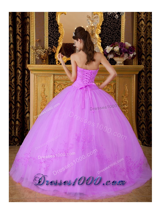 Lilac Sweetheart Tulle Quinceanera Gown Dresses with Appliques