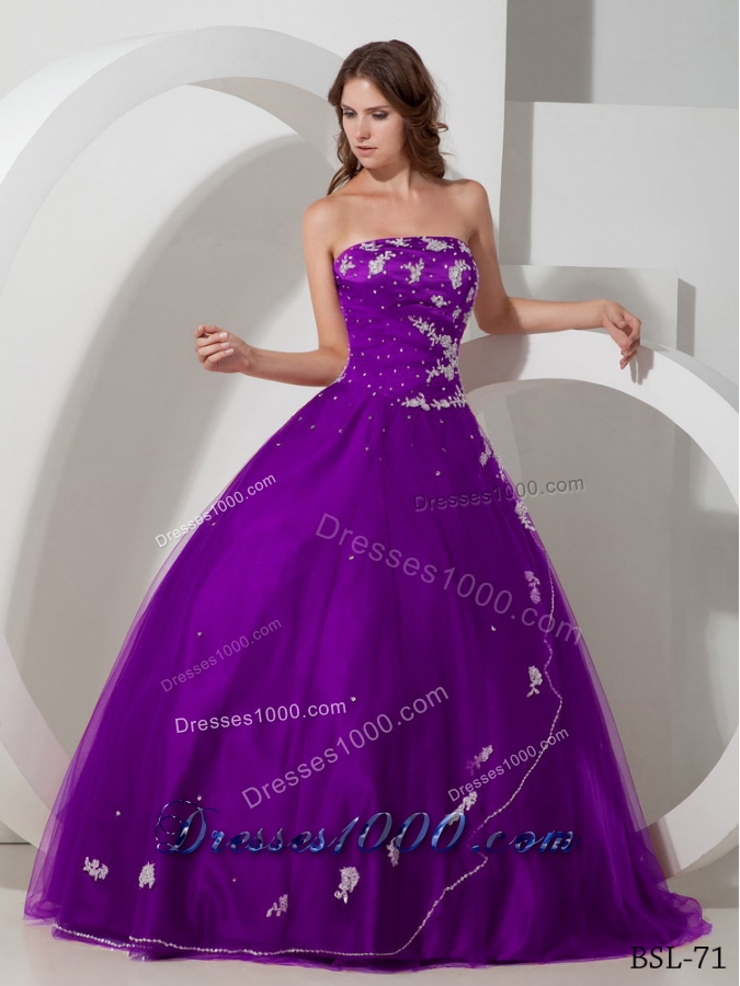 Ball Gown Strapless Purple Quinceanera Dress with Taffeta Appliques