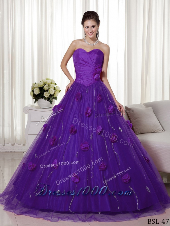 Princess Sweetheart Eggplant Purple Quinceanera Dresses with Hand Made Flowers