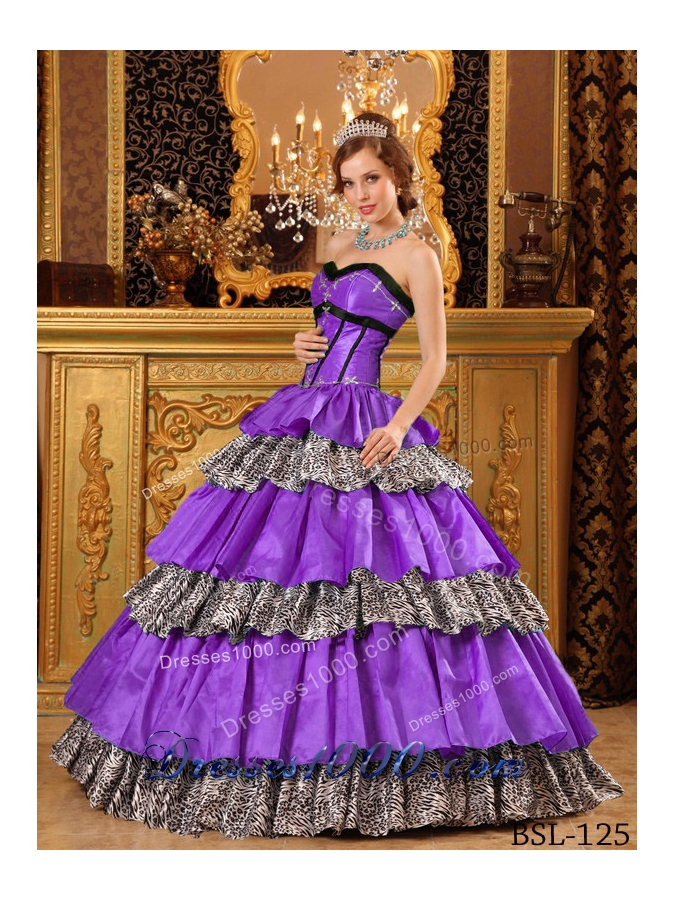 If you are inclined to add a little shine to your next special occasion, prom, or homecoming this turquoise sweetheart strapless dress is a perfect choice. The bustline of the dress is embellished with black color that makes you gorgeous.The skirt of the gown is really a perfect color with zebra and Purple. The corset style bodice is finished with a lace up tie back. Float into your party or black tie event in this ball gown strapless dress and it will look as if you are walking on air.