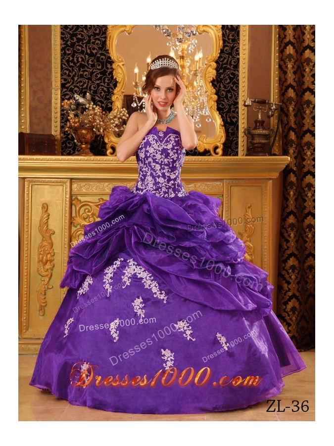 Purple Ball Gown Strapless Quinceanera Dress with Appliques