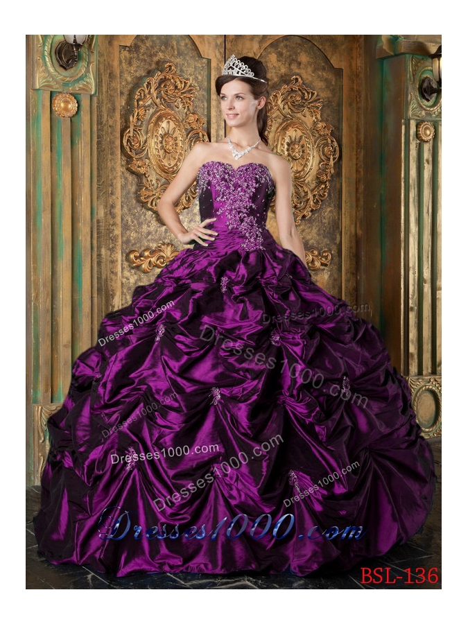 Eggplant Purple Ball Gown Sweetheart Quinceanera Dress with Picks-up
