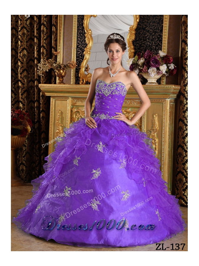 Purple Ball Gown Sweetheart Quinceanera Dress with Ruffles Organza