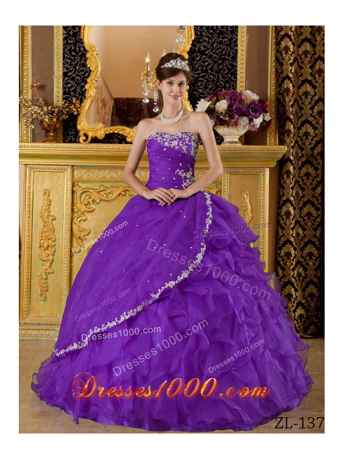 Eggplant Purple Ball Gown Strapless Quinceanera Dress with Appliques
