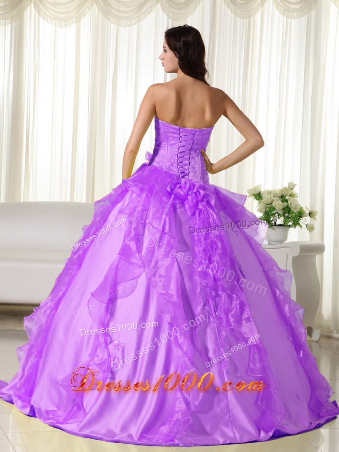 Sweetheart Taffeta Appliques Decorate Long Dress For Quinceaneras