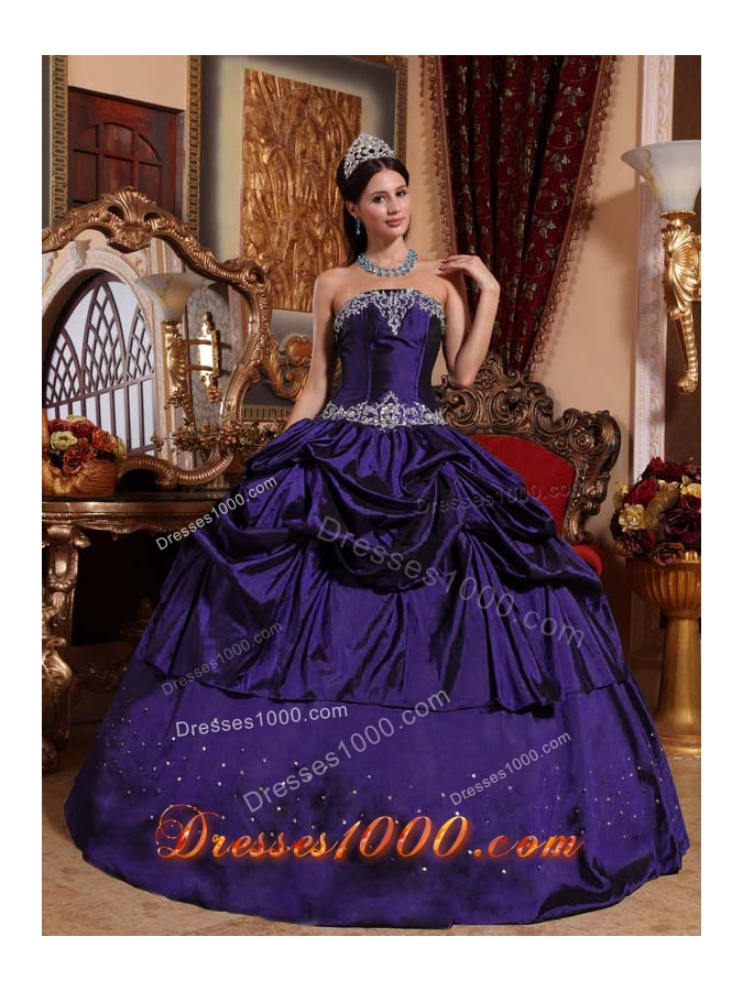 Fashionable Purple Puffy Strapless with Pick-ups and Beading for 2014 Quinceanera Dress