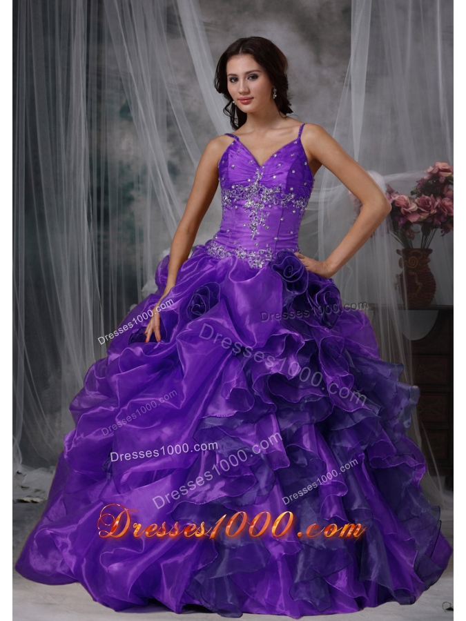 Discount Purple Puffy Straps with Ruffles and Beading for 2014 Quinceanera Dress