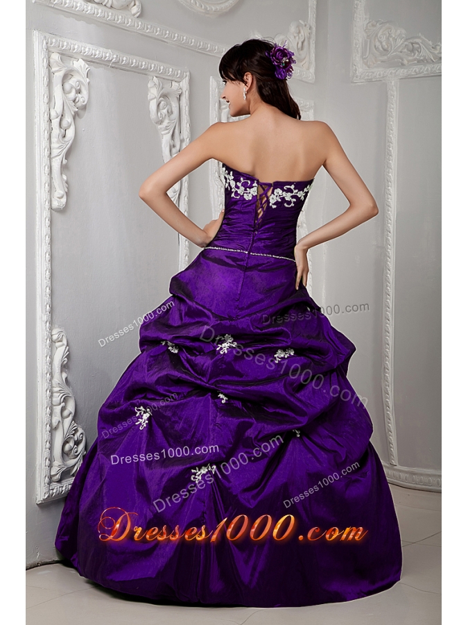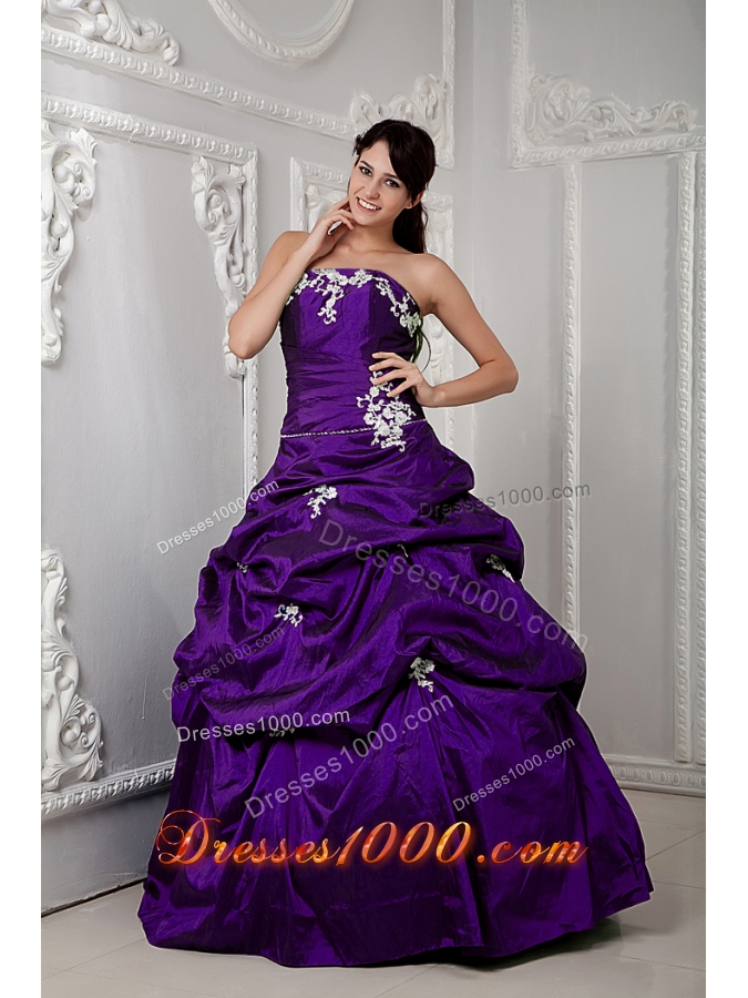 2014 Eggplant Purple Puffy Strapless with Pick-ups and Appliques Quinceanea Dress