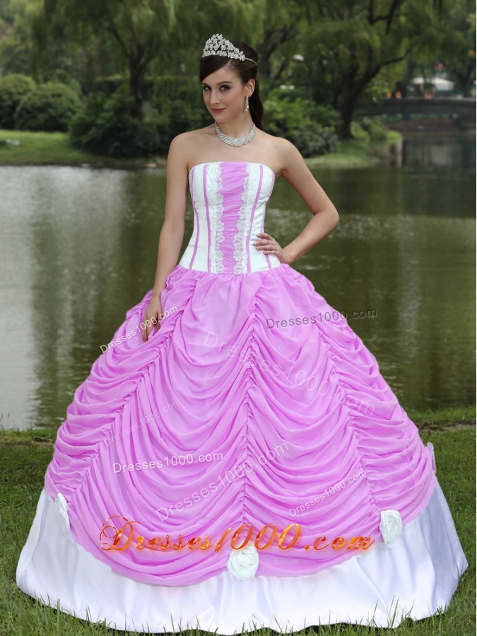 Beautiful Strapless Quinceanera Dress with Lace and Pick-ups