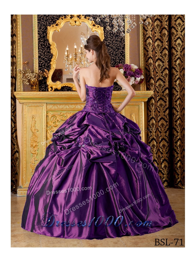 Eggplant Purple Ball Gown Strapless Quinceanera Dress with Hand Made Flower