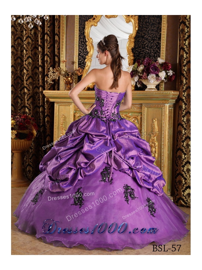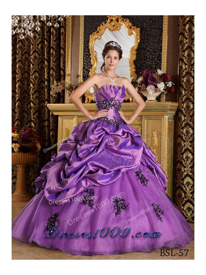 Princess Strapless Sweet 16 Dresses with Appliques and Pick-ups