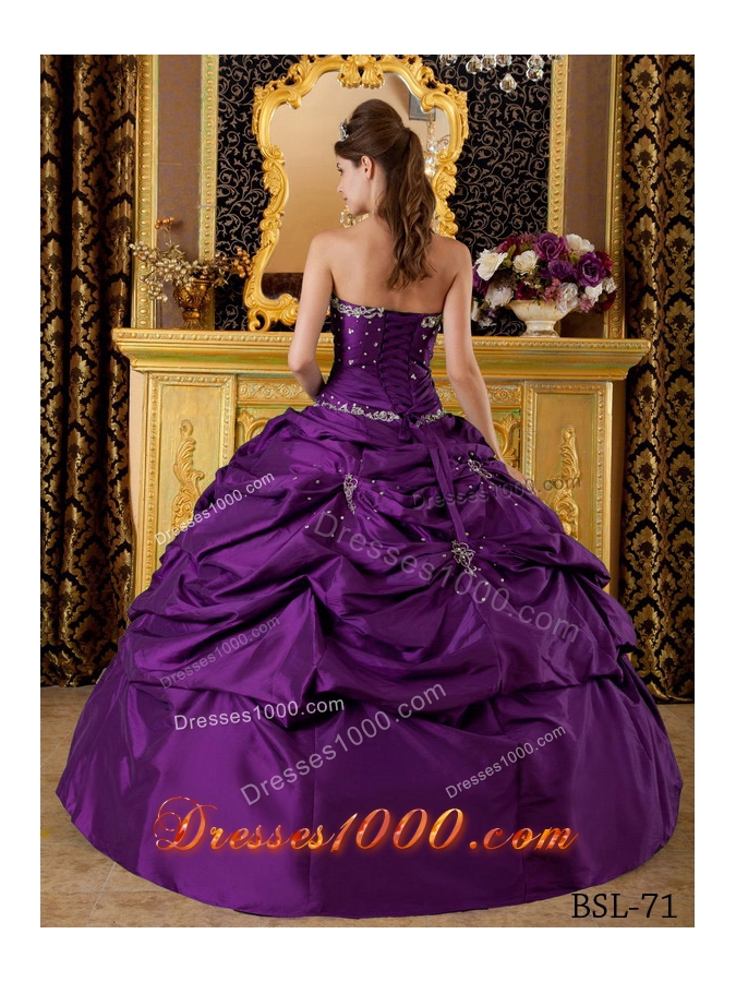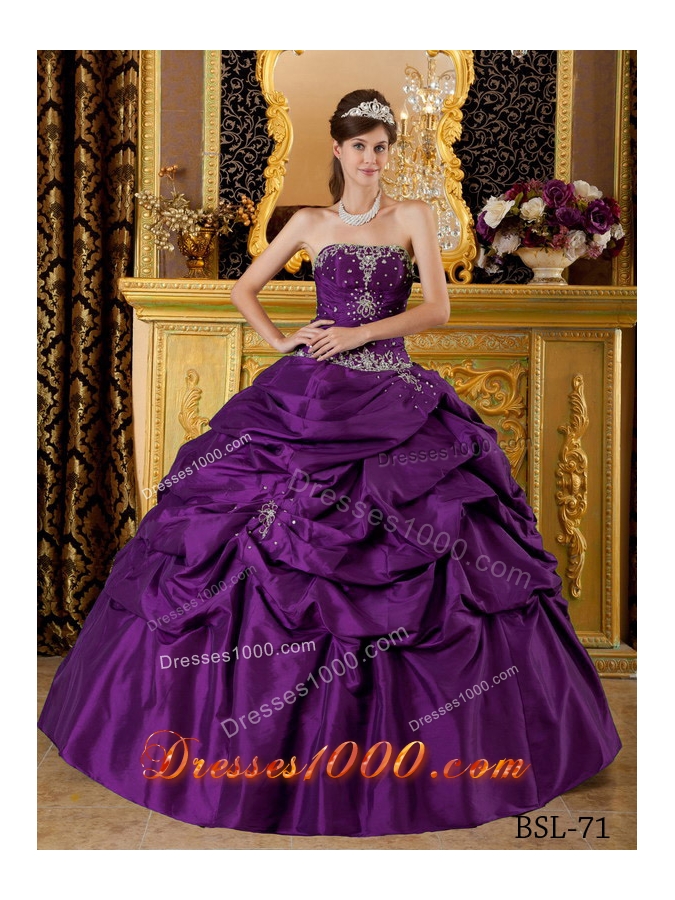 Eggplant Purple Ball Gown Strapless Taffeta Appliques Quinceanera Dress
