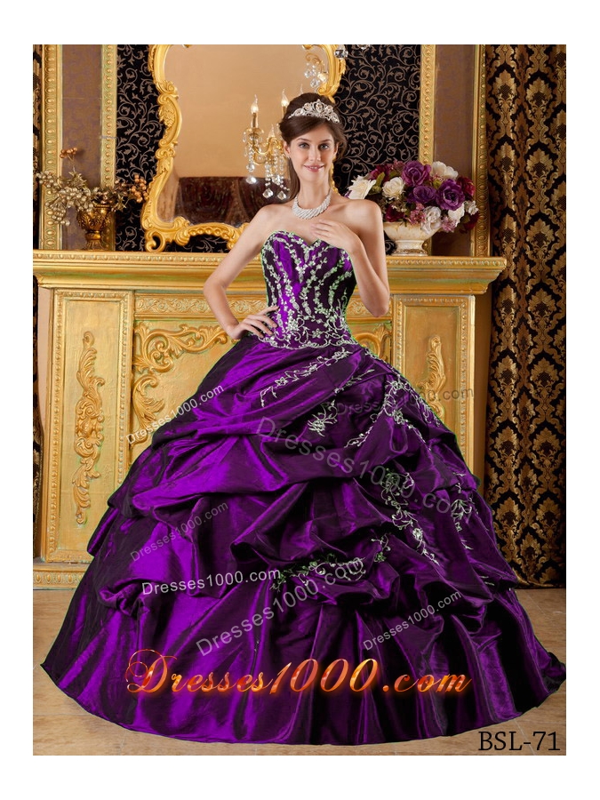 Eggplant Purple Ball Gown Sweetheart Quinceanera Dress with Appliques and Pick-ups