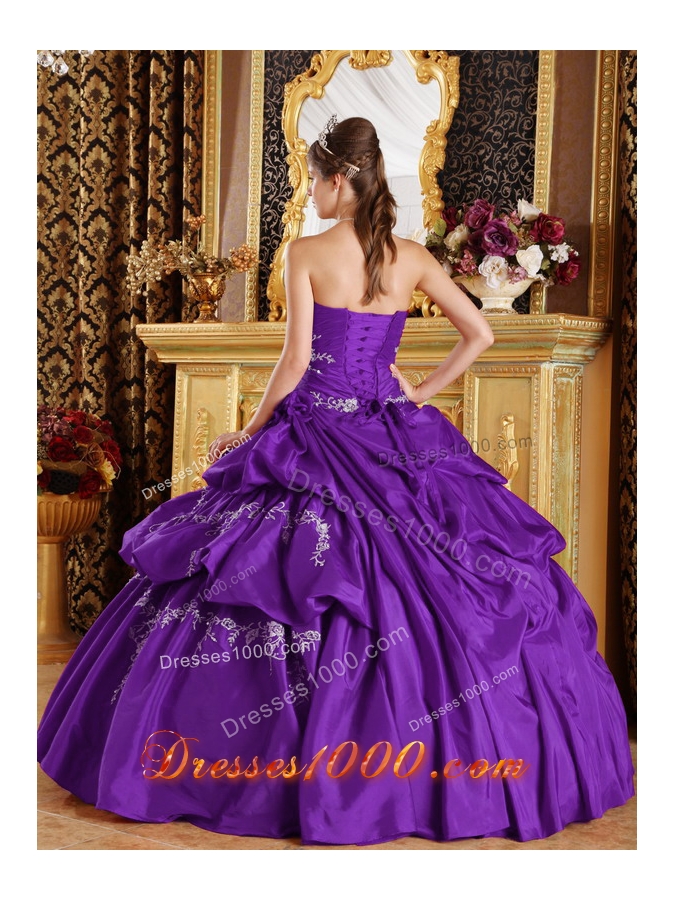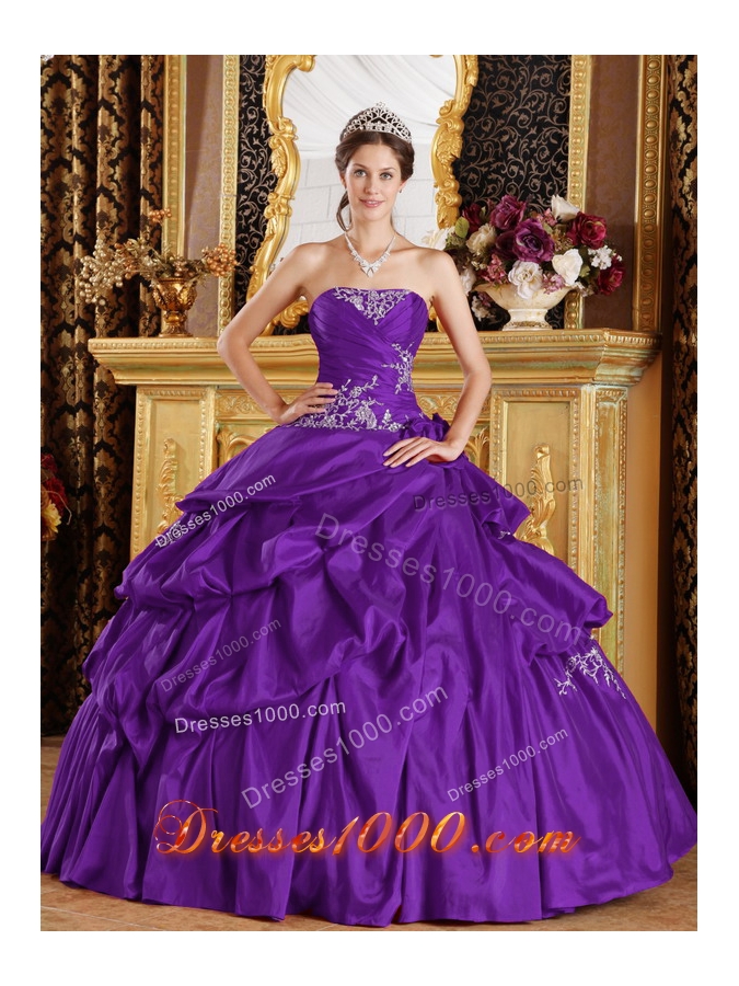 Purple Ball Gown Strapless Quinceanera Dress with Appliques and Pick-ups