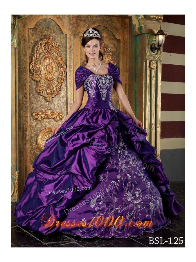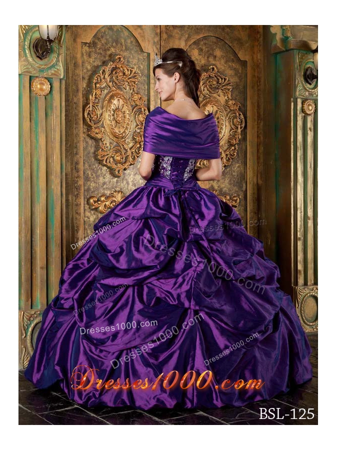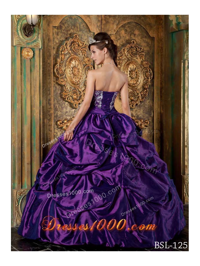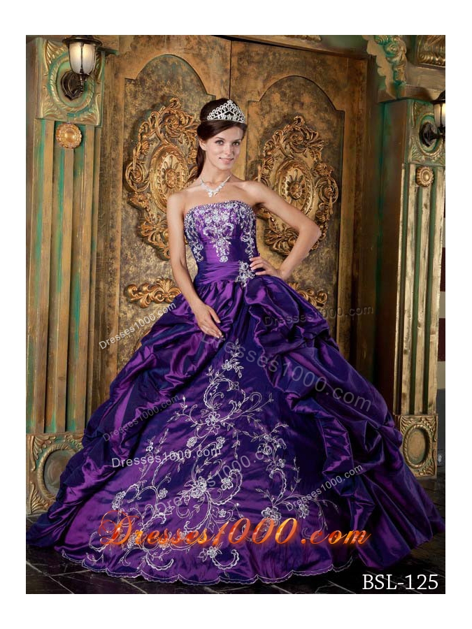 Eggplant Purple Ball Gown Strapless Quinceanera Dress with Pick-ups and Embroidery