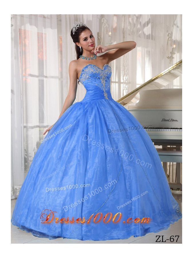 Perfect Baby Blue Sweetheart Puffy Appliques Quinceanera Dress with Beading For 2014