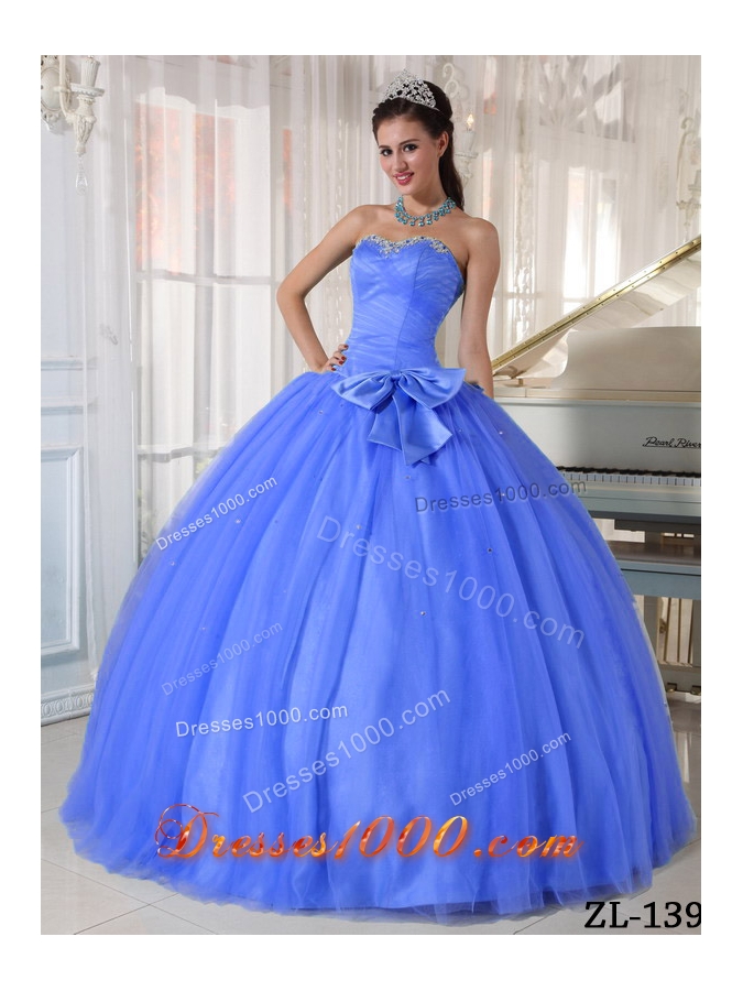 2014 Gorgeous Blue Puffy Sweetheart Quinceanera Dress with Beading and Bowknot