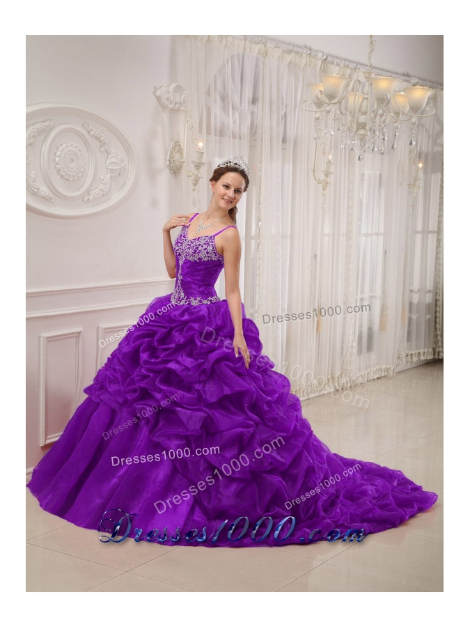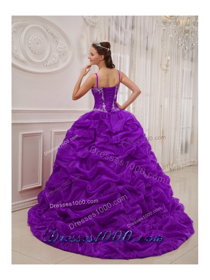 Purple Ball Gown Spaghetti Straps Organza Beading Quinceanera Dresses Gowns