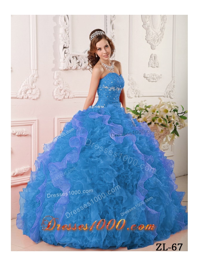 2014 Discount Aqua Blue Sweetheart Puffy Quinceanera Dress with Appliques and Beading