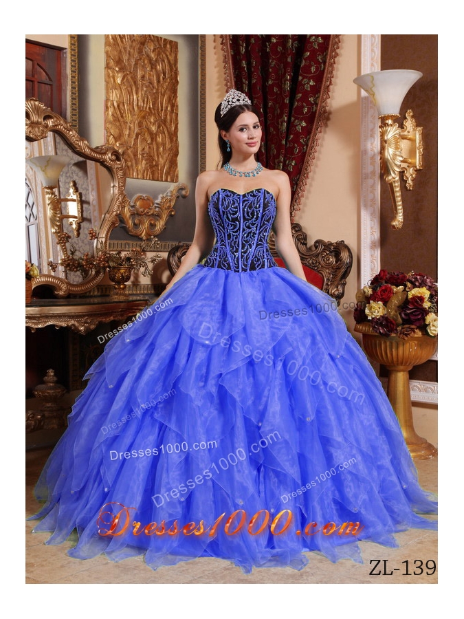 2014 Royal Blue Puffy Sweetheart Embroidery Quinceanera Dress with Ruffles