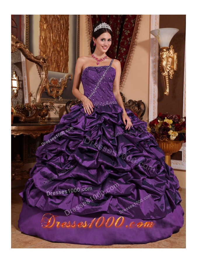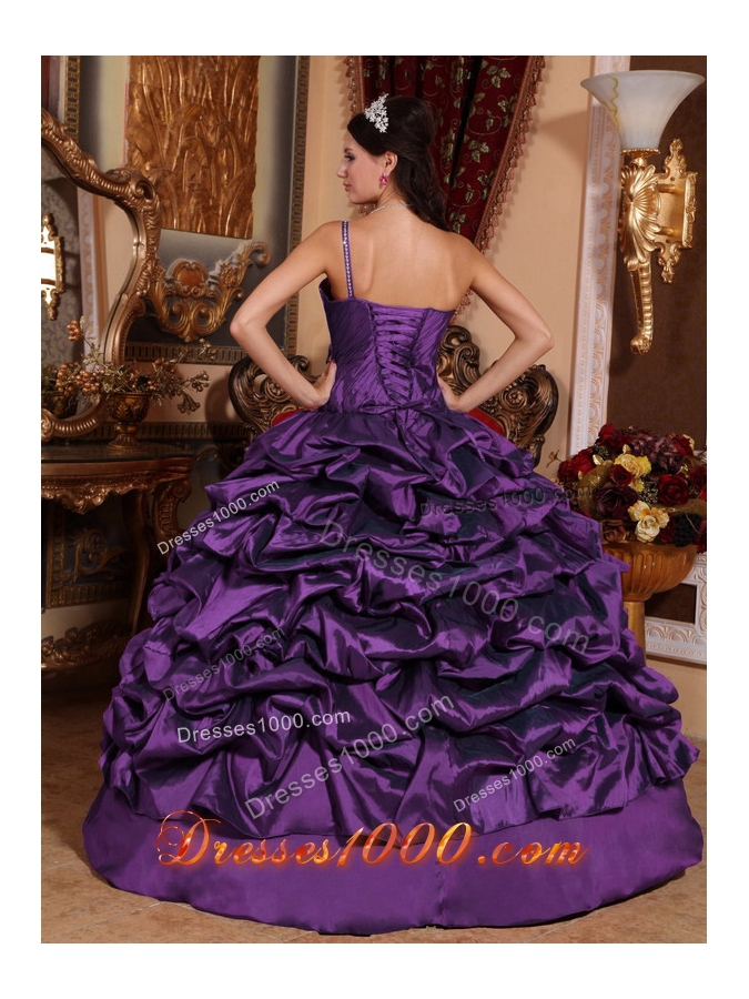 2014 The Super Hot Purple Puffy One Shoulder Pick-ups Sweet 15 Dresses with Beading
