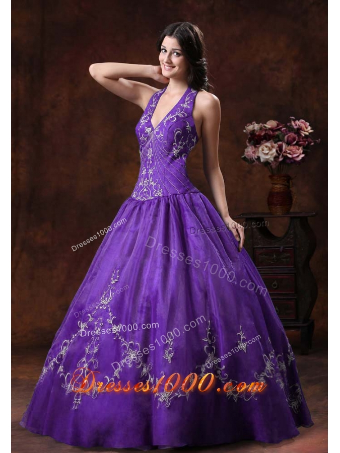 Beautiful Princess Halter Quinceanera Dresses With Embroidery Decorate Organza In 2014