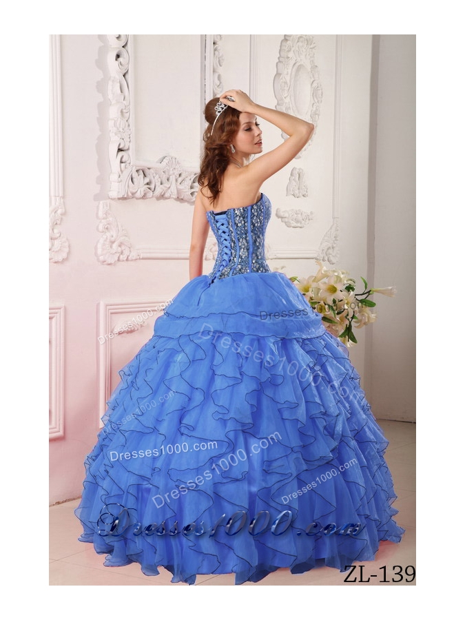 Modest Blue Ball Gown Sweetheart For 2014 Quinceanera Dress with Beading