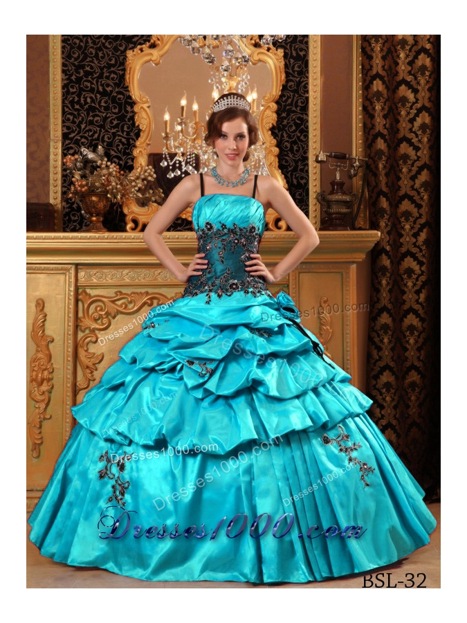 Simple Straps Baby Blue 2014 Quinceanera Dress with Appliques