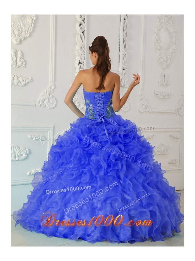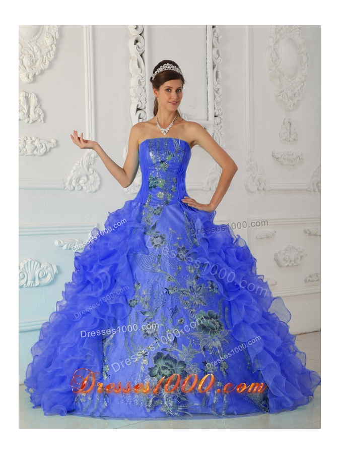2014 Exquisite Puffy Strapless Embroidery Blue Quinceanera Dress with Ruffles