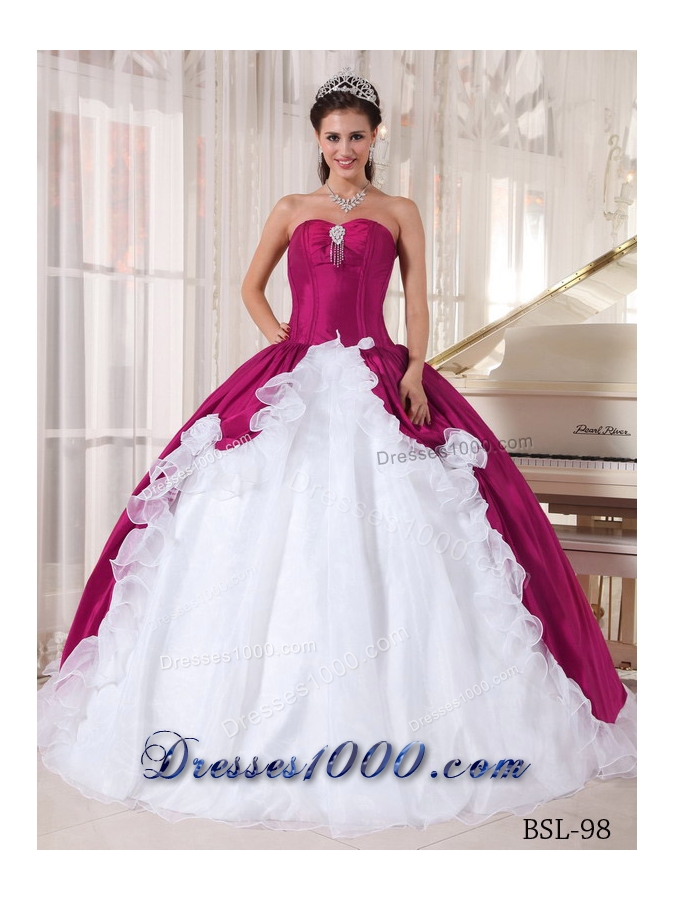Fuchsia Quinceanera Dresses, Fuchsia and White Ball Gown Sweetheart Floor-length Organza and Taffeta Beading Quinceanera Dress