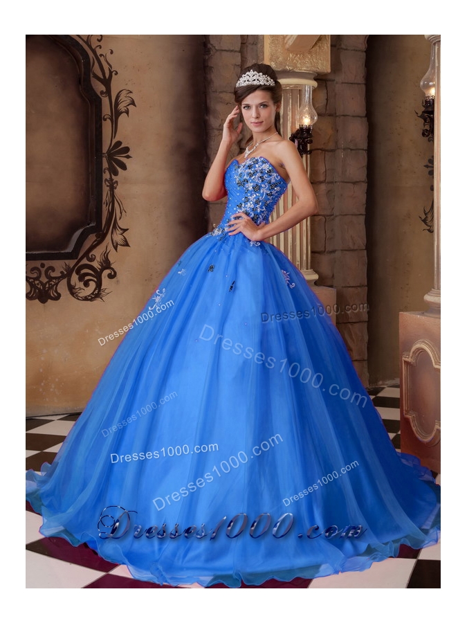 Blue Princess Sweetheart for 2014 Beading Quinceanera Dress with Appliques